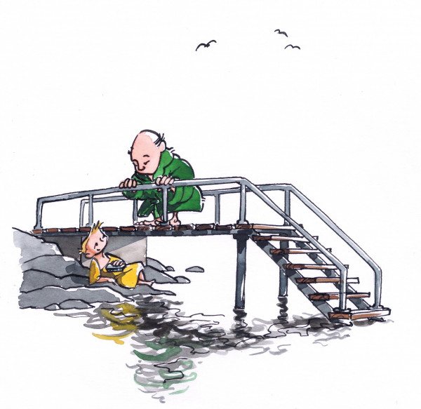 Illustration ur Albin i Mellanlandet, förf. Åsa Uddh, Lange Publisher 2026
